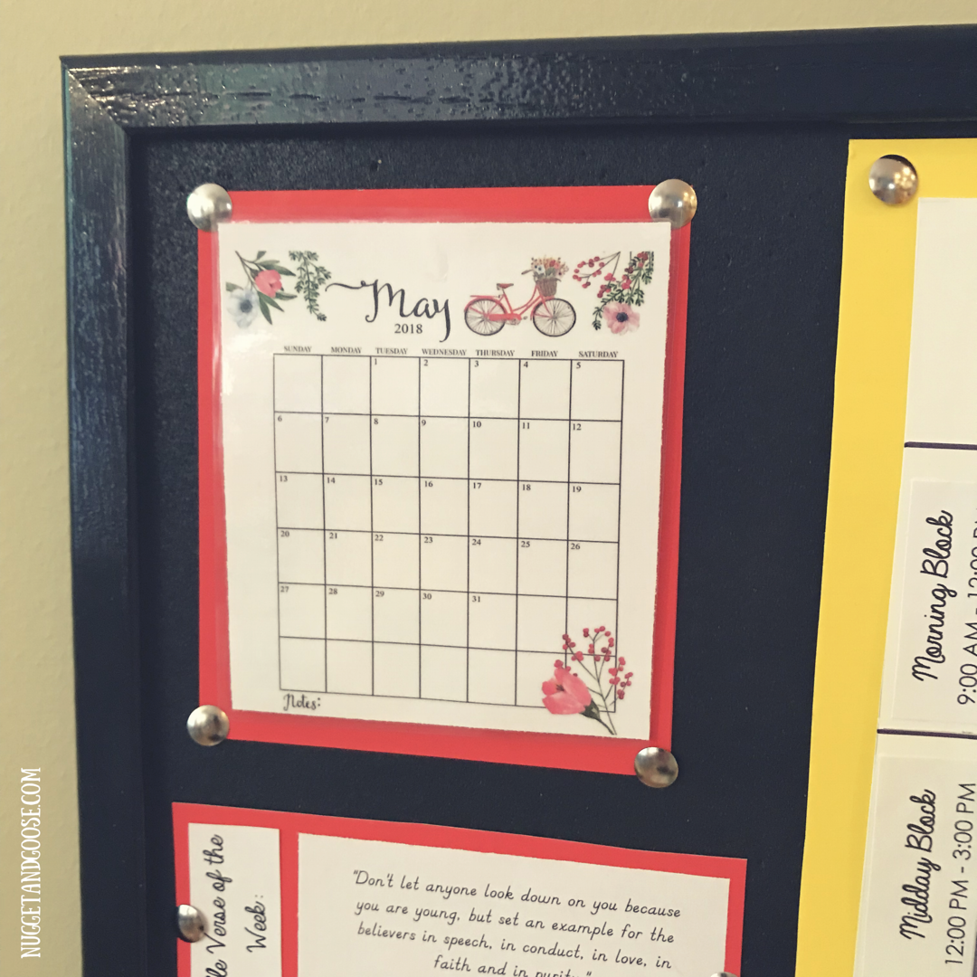 - Finally, assemble your schedule components on your cork board and secure with push pins.It’s ready to use!